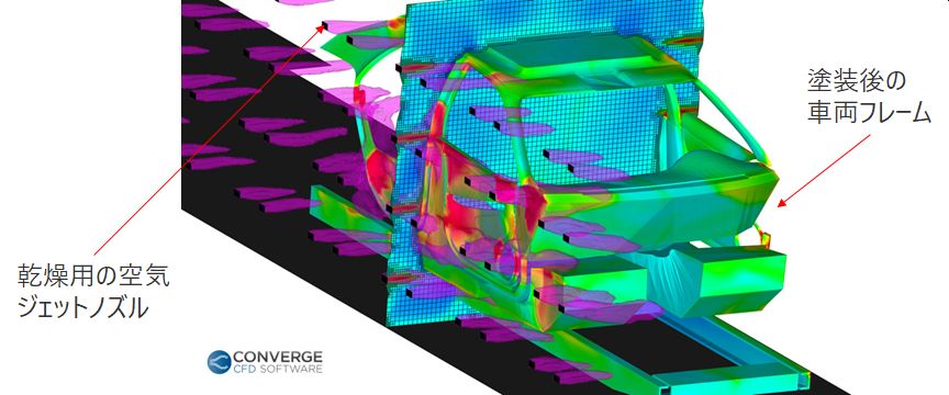 「CONVERGE」は、エンジン筒内やガスタービン、ポンプ、コンプレッサのシミュレーションで広くご活用いただいていますが、実は、塗装プロセスのシミュレーションにも適用することができます。