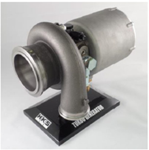 - まずは、ターボジェネレーターについて簡単にご説明します。ターボジェネレーターは、排気ガスによってタービンを回して発電し、電力としてエネルギーを回収する仕組みで、タービンとジェネレーターの組み合わせです。ターボチャージャーのコンプレッサーをジェネレーターに置き換えた構成とも見ることができます。