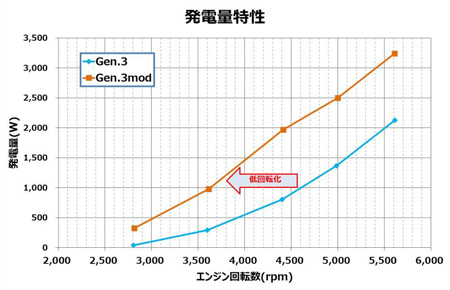 タービン形状とハウジングの新規設計で、発電開始の低回転化を実現し発電量を向上