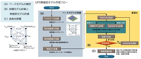 - 現在、JEDEC(※1)で2008年に策定されたDELPHI(※2)モデルが熱設計用の簡易モデルとして広く使用されていますが、このモデルは単一の熱源を前提としています。一方で、近年スマートフォンなどのモバイルデバイスで使用されるメモリストレージデバイス(以下、メモリ)は、NAND型フラッシュメモリ(※3、以下NAND)とコントローラで構成されており、複数の熱源を持つものが一般的です。そのため、既存のDELPHIモデルを現在の主流である複数熱源を持つメモリにそのまま適用することは不可能でした。