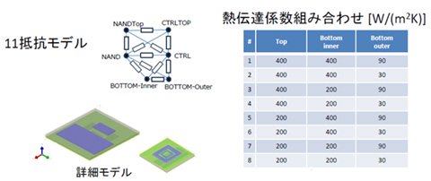 課題等:簡易モデル作成、熱解析、受託解析、時間短縮、熱設計効率化、最適化、メモリデバイス、複数熱源、NAND型フラッシュメモリ