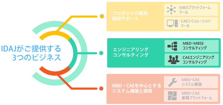 IDAJのコンサルティング事業は、MBD・CAE技術へフォーカスするとともに、お客様の製品開発プロセスと技術に対する深い理解に基づいたトータル・ソリューションを通じて、お客様の問題を解決することに唯一の価値を見出しています。