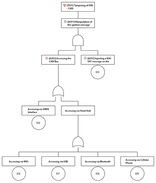 特定した脅威に対してTARA(Threat Analysis and Risk Assessment)を実施することができます。リスク分析手法であるHEAVENSのリスクグラフに基づき、脅威の発生可能性と重要度(Severity Level)から、必要なセキュリティレベルを算出します。