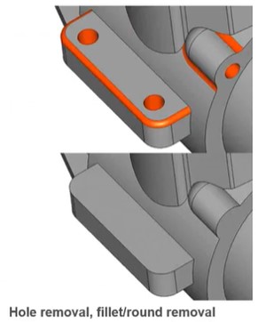 CADfixでは、CAEに不要な形状を検索・削除する形状簡易化機能を標準装備していますので、作成された形状をCAEに最適な形状に変換することができます。