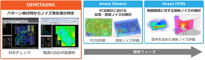 VCCI、FCC、ENなどの規制があるEMCの問題に対しては、PCB設計の下流工程で対策を打とうとすると大きな手戻りが発生する危険性があるため、できるだけ設計の上流側で必要な検証を行っておく必要があります。