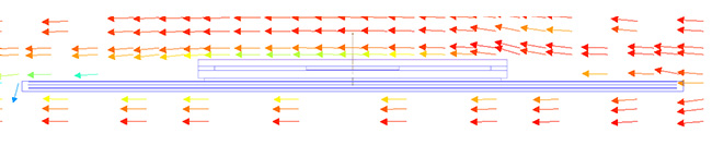 複数のオブジェクトで構成された部品に対して、電流や電圧の入出力箇所を設定するだけで、固体の電流、電圧、ジュール発熱分布を計算することができます。電流ベクトル ジュール発熱コンター - 過渡熱試験装置「Simcenter T3STER」キャリブレーション機能